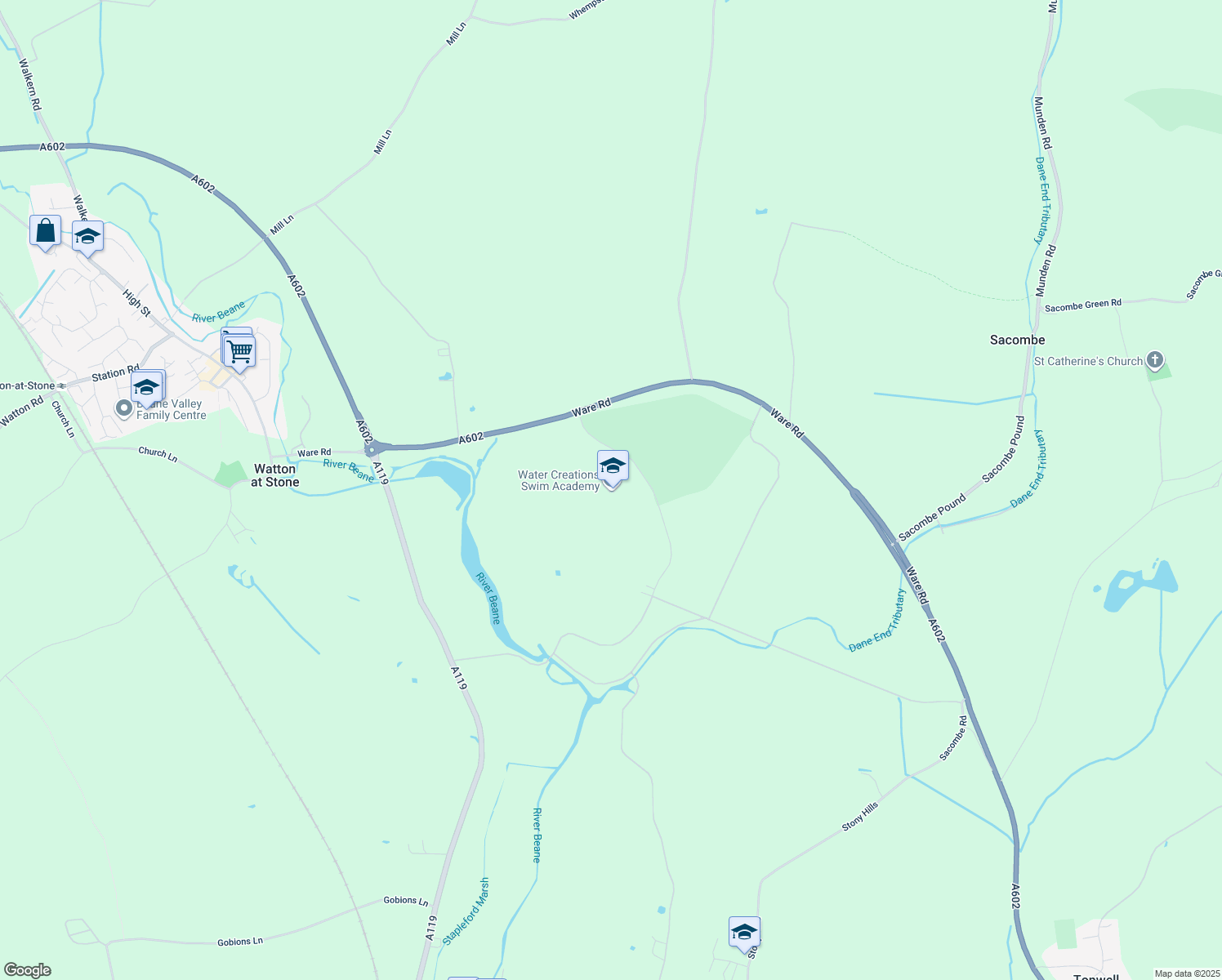 The closest park is Sacombe Park.