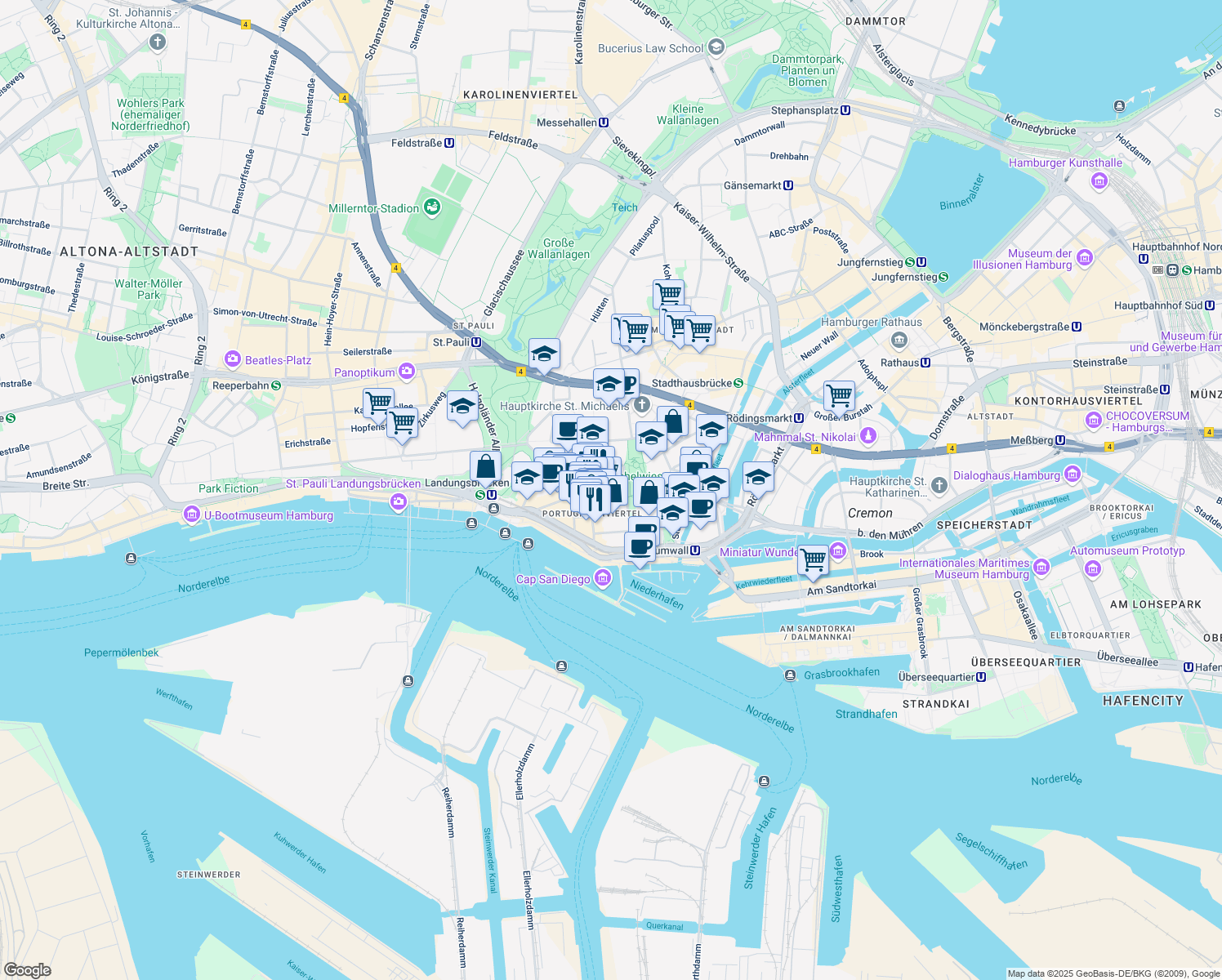 Nearby parks include Venus Garten, Michelwiese and Alter Elbpark.