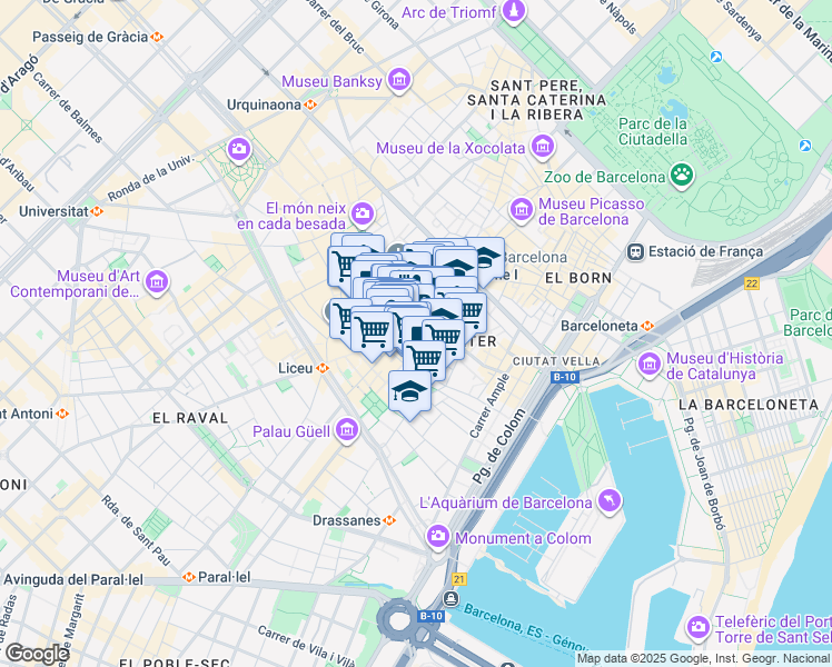 Nearby parks include Plaça de Sant Felip Neri, Parque Guell and Plaça de Victor Balaguer.
