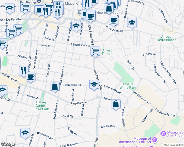 This location is in the Don Gaspar neighborhood in Santa Fe. Nearby parks include Amelia White Park, Cornell Park and Orlando Fernandez Park.
