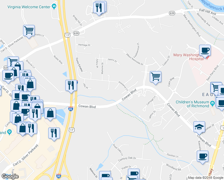 This location is in Fredericksburg. Nearby parks include Alum Springs Park and Kenmore Park.
