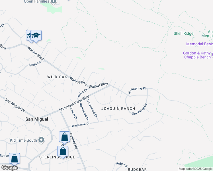 This location is in Walnut Creek. Nearby parks include Shell Ridge Open Space, Rudgear Park and Rudgear Park.