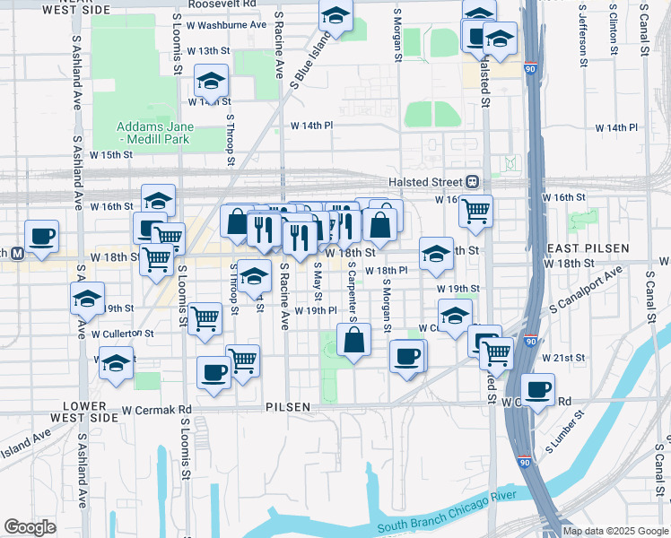 1116 West 18th Place is a 12 minute walk from the BNSF Burlington Northern at the Halsted Street stop.
