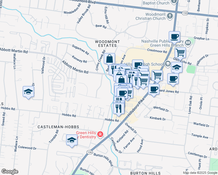 2215 Abbott Martin Road is in the Green Hills neighborhood. Green Hills is the 54th most walkable neighborhood in Nashville with a neighborhood Walk Score of 30.