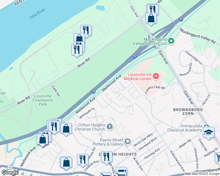 This location is in the Clifton Heights neighborhood in Louisville. Nearby parks include Bingman Memorial Park, Eva Bandman Park and Twin Park.