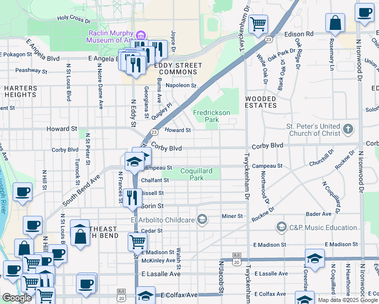 This location is in the Northeast South Bend neighborhood in South Bend. Nearby parks include Coquillard Park, Kelly Playground and Howard Park.
