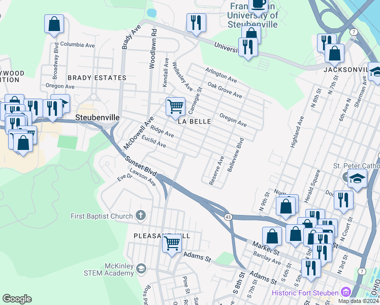 This location is in the city of Steubenville, OH. Steubenville has an average Walk Score of 38 and has 18,659 residents.