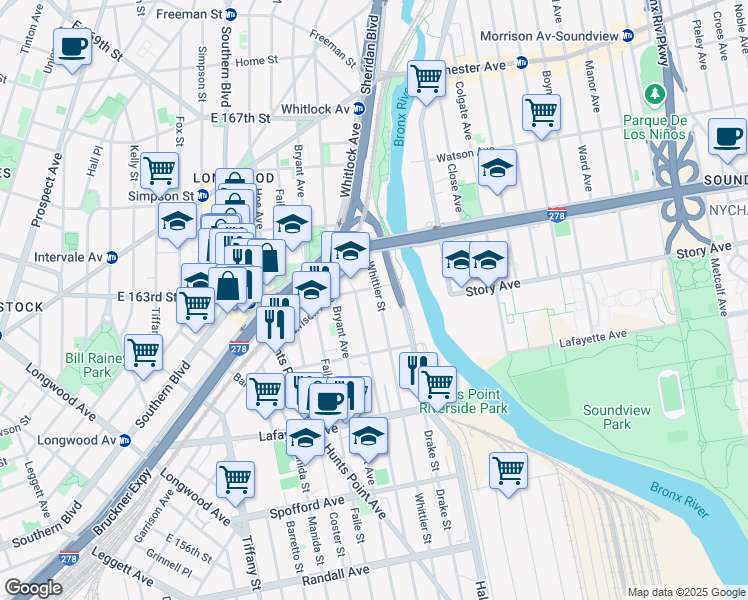 This location is in the Hunts Point neighborhood in New York. Nearby parks include Lyons Square Playground, Hoe Garden and Monsignor Del Valle Square.
