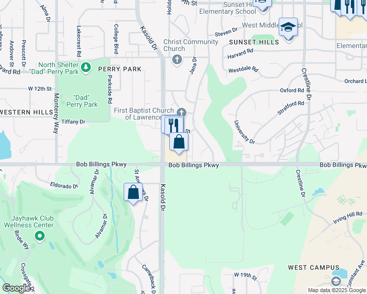 This location is in the Sunset Hills neighborhood in Lawrence. Nearby parks include Dad Perry Park, Centennial Park and University of Kansas - Lawrence Campus Jayhawk Soccer Complex.