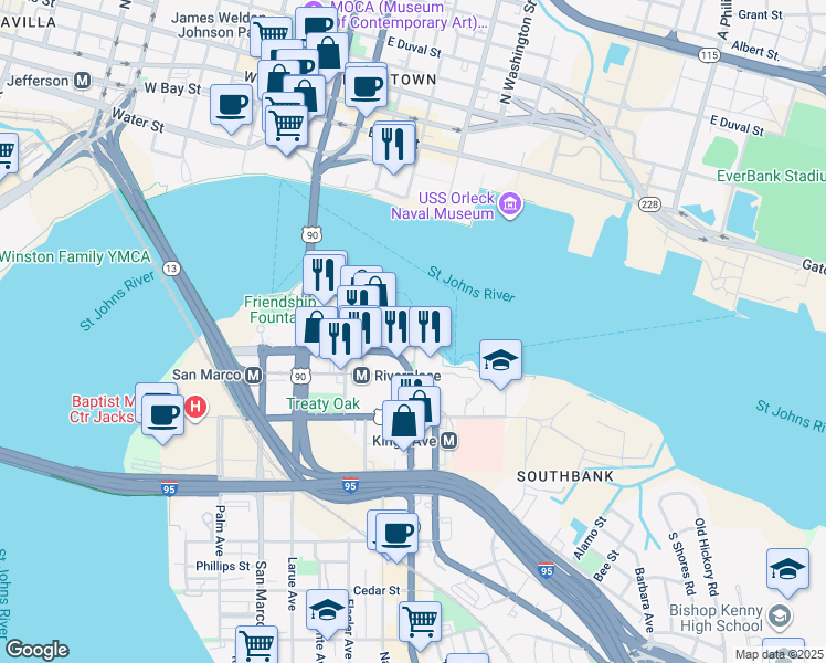 This location is in Jacksonville. Nearby parks include Treaty Oak Park, Jacksonville Veterans Memorial Arena and Hemming Park.