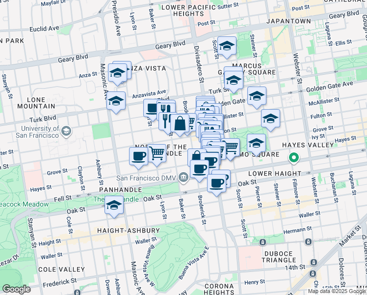 This location is in the Panhandle neighborhood in San Francisco. Nearby parks include Alamo Square Historic District, Alamo Square and Alamo Square Park.