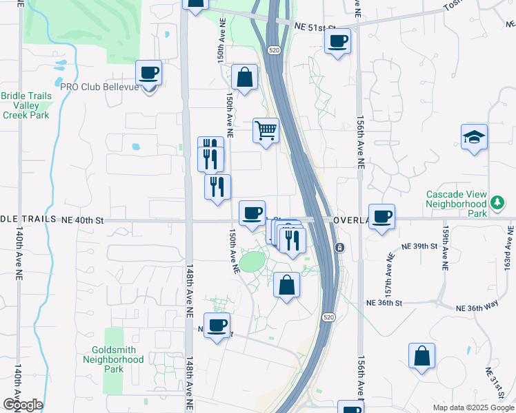 15120 Northeast 40th Street is in the Overlake neighborhood. Overlake is the 2nd most walkable neighborhood in Redmond with a neighborhood Walk Score of 35.