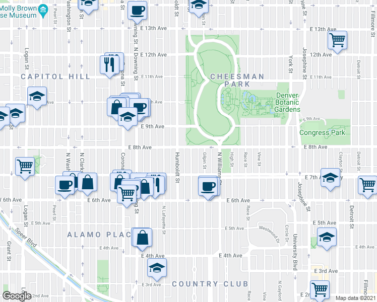 This location is in the Country Club neighborhood in Denver. Nearby parks include Cheesman Park, Cheesman Park and Humboldt Street Historic District.
