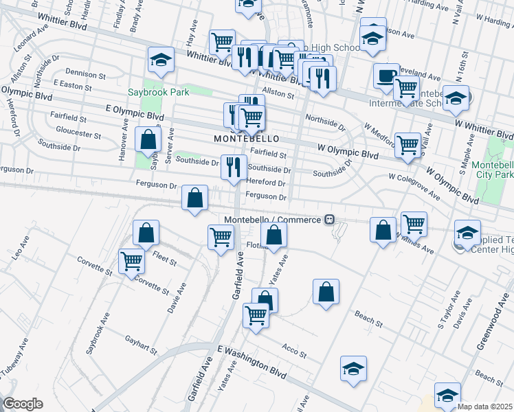 This location is in Commerce. Nearby parks include Saybrook Park, Montebello City Park and Montebello Park.