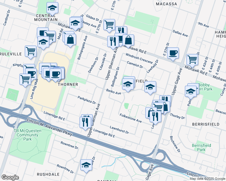 This location is in Hamilton. Nearby parks include Macassa Park, TB McQuesten Park and Crerar Neighbourhood Park.