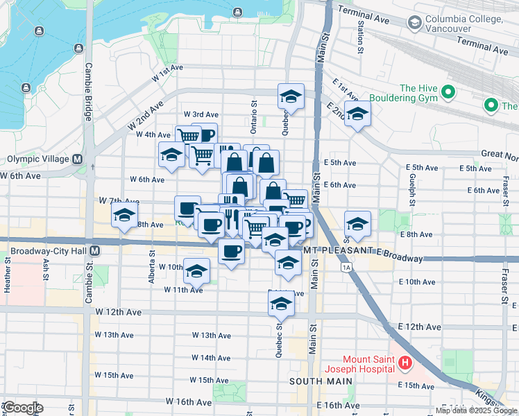16 East 7th Avenue is a 12 minute walk from the Canada Line at the Broadway-City Hall Station @ Platform 1 stop.