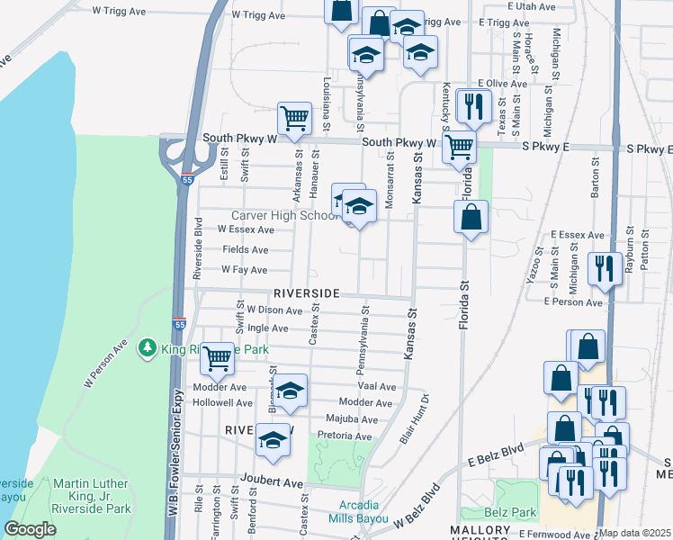1633 Pennsylvania Street is in the Riverview neighborhood. Riverview is the 70th most walkable neighborhood in Memphis with a neighborhood Walk Score of 21.