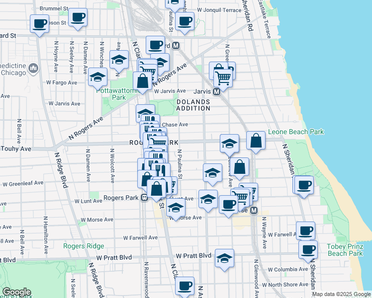 This location is in Chicago. Nearby parks include Touhy Park, Goldberg Park and Pottawattomie Park.