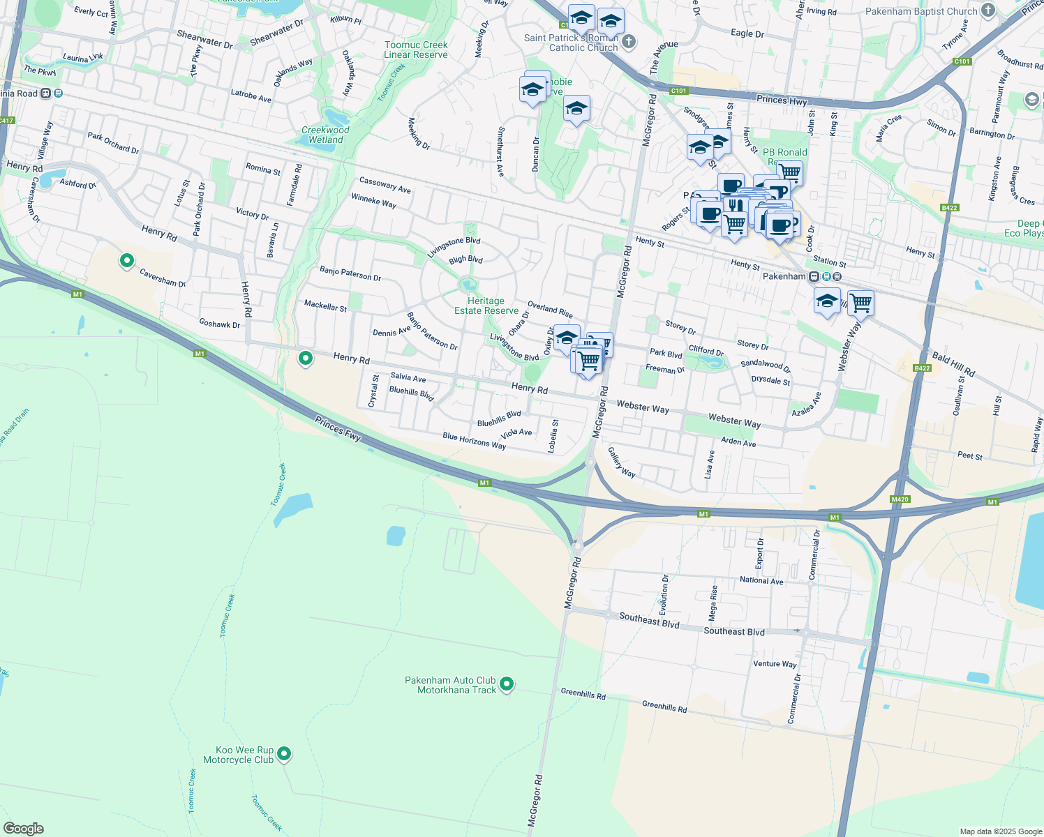 This location is in Pakenham. Nearby parks include William Bruce Ronald Reserve, Burke Park and P.B. Ronald Park.