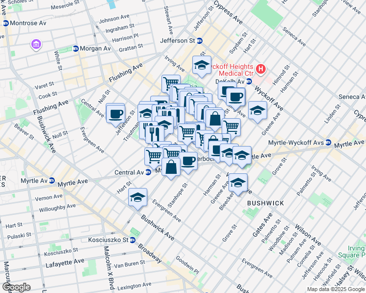 176 Wilson Avenue is a six minute walk from the M Queens Blvd Local/6 Av Local at the Central Av stop.