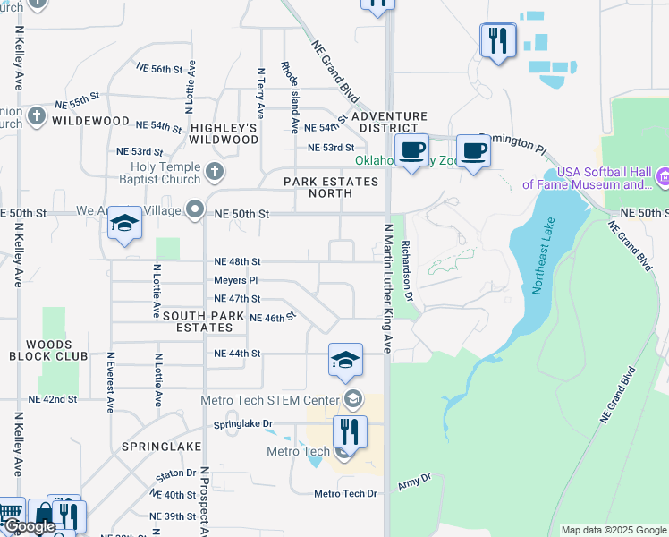 This location is in the South Park Estates neighborhood in Oklahoma City. Nearby parks include Perry Park, Springlake Park and Lincoln Park.