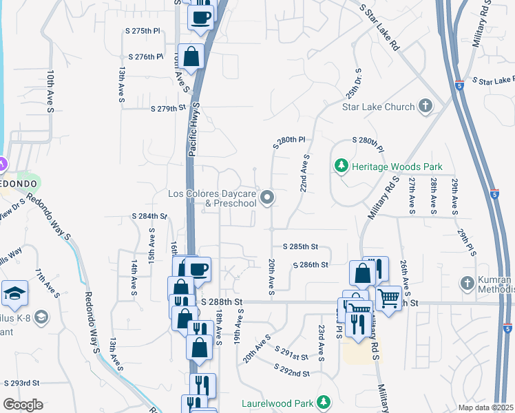 This location is in Federal Way. Nearby parks include Heritage Woods Park, Wotton Park and Sacajawea Park.