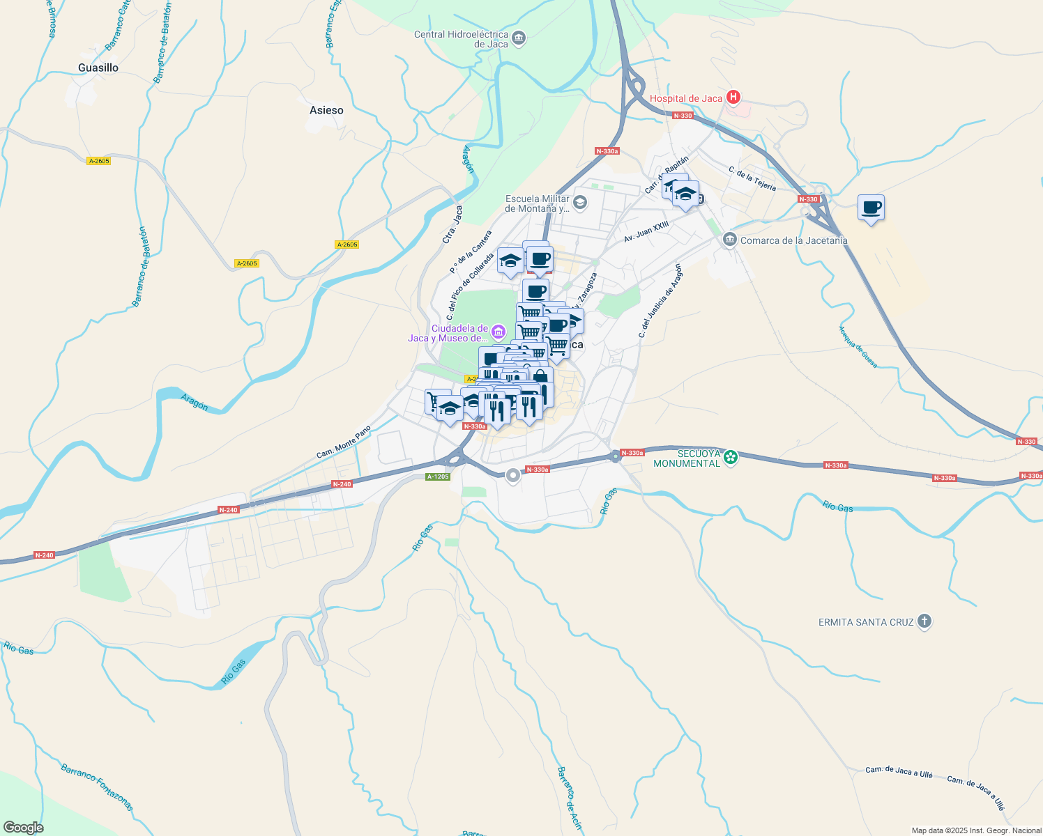 map of restaurants, bars, coffee shops, grocery stores, and more near 19 Calle del Carmen in Jaca