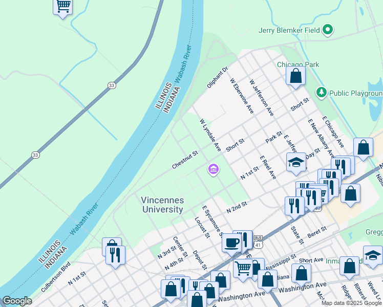 This location is in the city of Vincennes, IN. Vincennes has an average Walk Score of 45 and has 18,423 residents.
