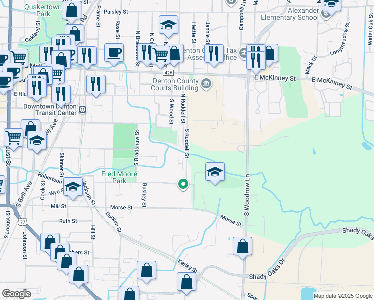 202 South Ruddell Street is a 13 minute walk from the A-train at the Downtown Denton Transit Center stop.