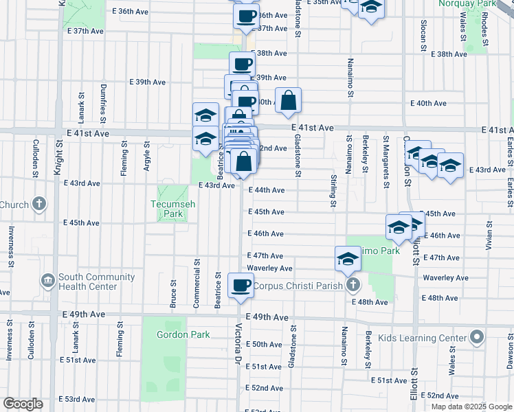 2031 East 45th Avenue is in the Victoria-Fraserview neighborhood. Victoria-Fraserview is the 16th most walkable neighborhood in Vancouver with a neighborhood Walk Score of 65.