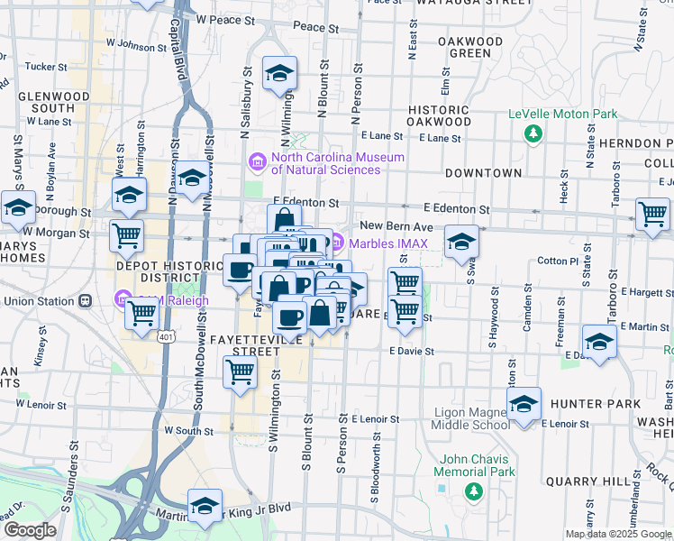 This location is in Raleigh. Nearby parks include Moore Square, Nash Square and Nash Square.