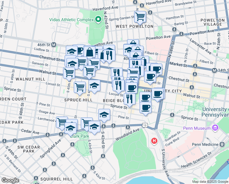 This location is in the Spruce Hill neighborhood in Philadelphia. Nearby parks include Clark Park, Chicken Park and Clark Park.