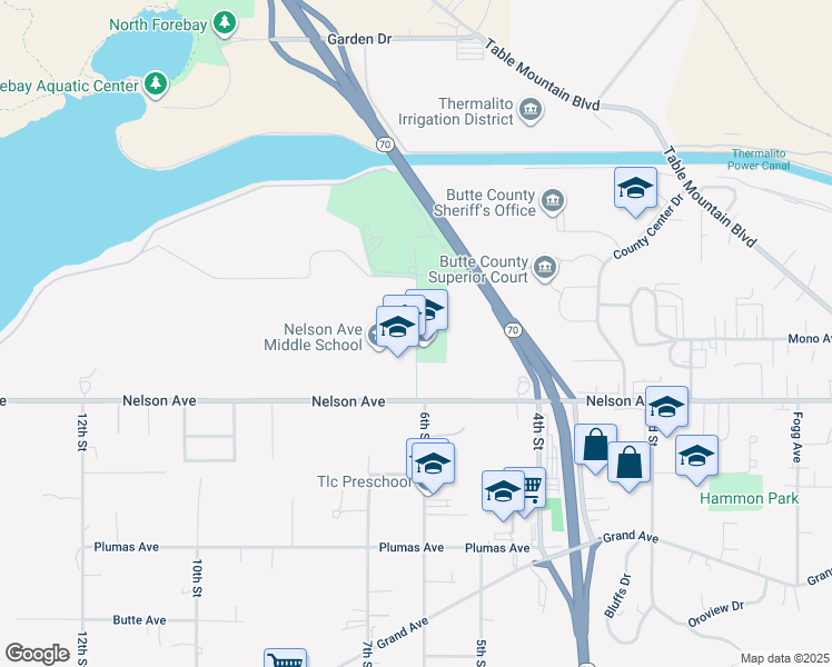 This location is in Oroville. Nearby parks include Nelson Park, Thermalito Forebay North Picnic Area and Lake Oroville State Recreational Area.