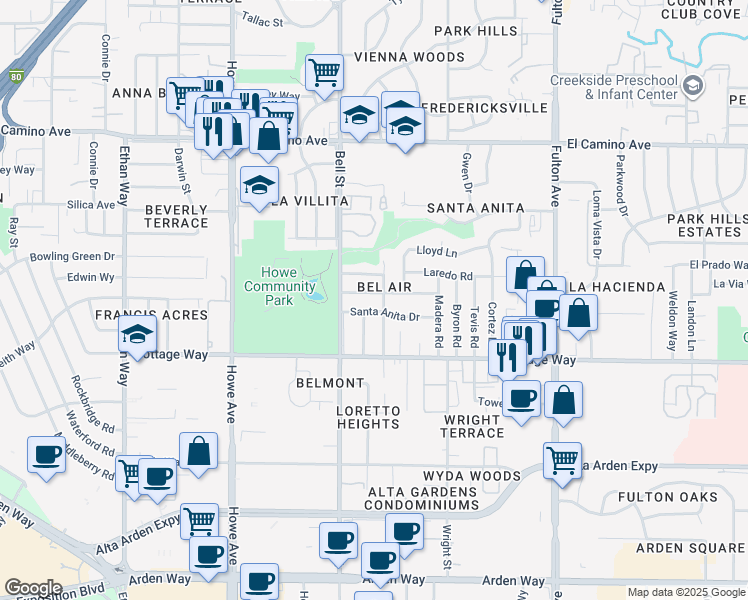 This location is in Arden-Arcade. Nearby parks include Santa Anita Park, Howe Community Park and Bellview Park.