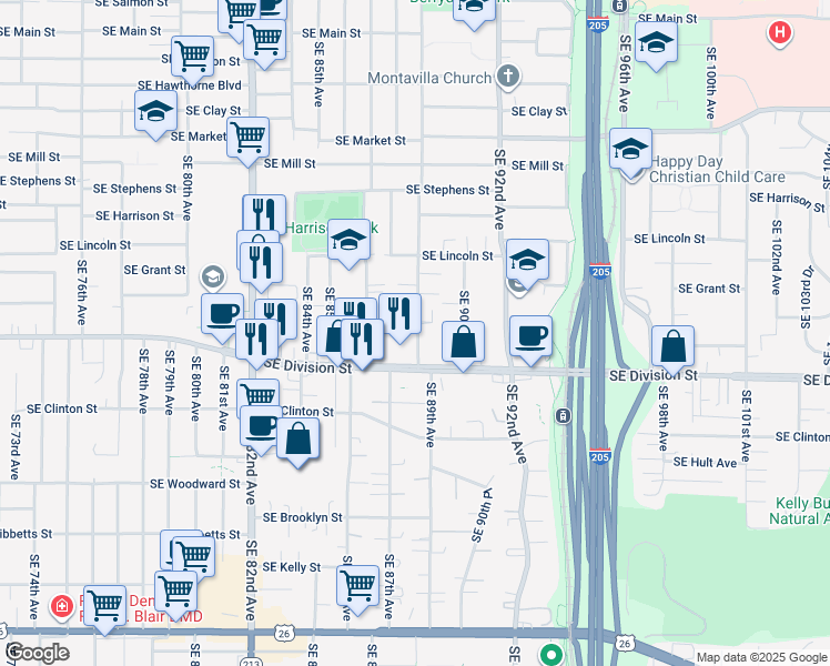 This location is in the Montavilla neighborhood in Portland. Nearby parks include Harrison City Park, Cherry Blossom City Park and Kelly Butte Natural Area.