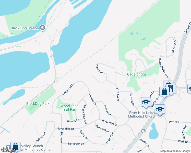 This location is in Burnsville. Nearby parks include Minnesota Valley National Wildlife Refuge, North River Hills Park and Minnesota Valley National Wildlife Refuge.