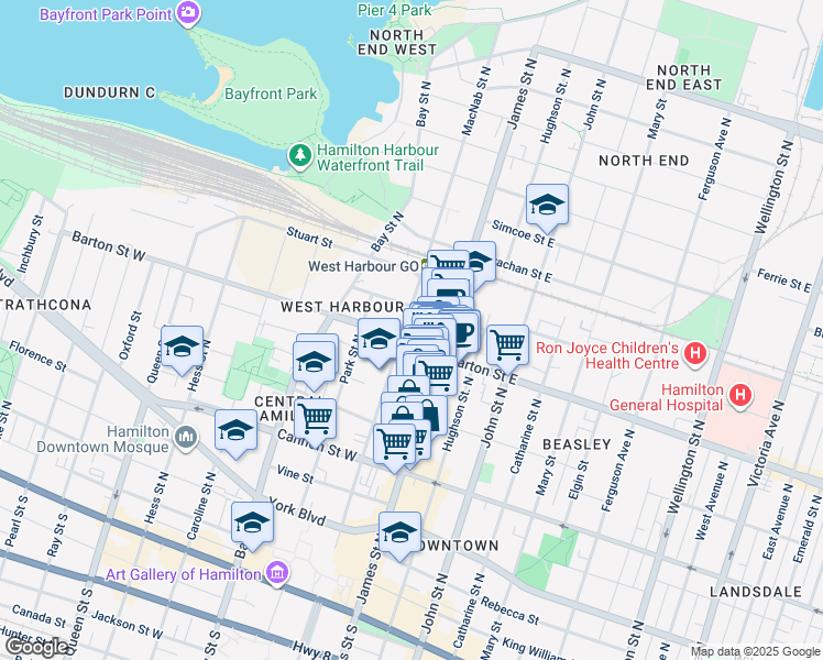 This location is in Hamilton. Nearby parks include Central Park, Gore Park and Beasley Park.