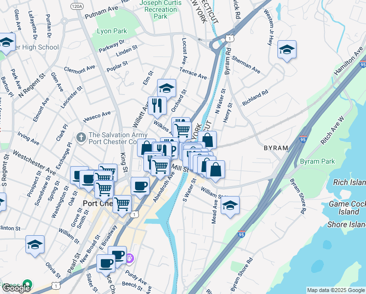 This location is in Port Chester. Nearby parks include Monument Park, Lyon Park and Byram Park.