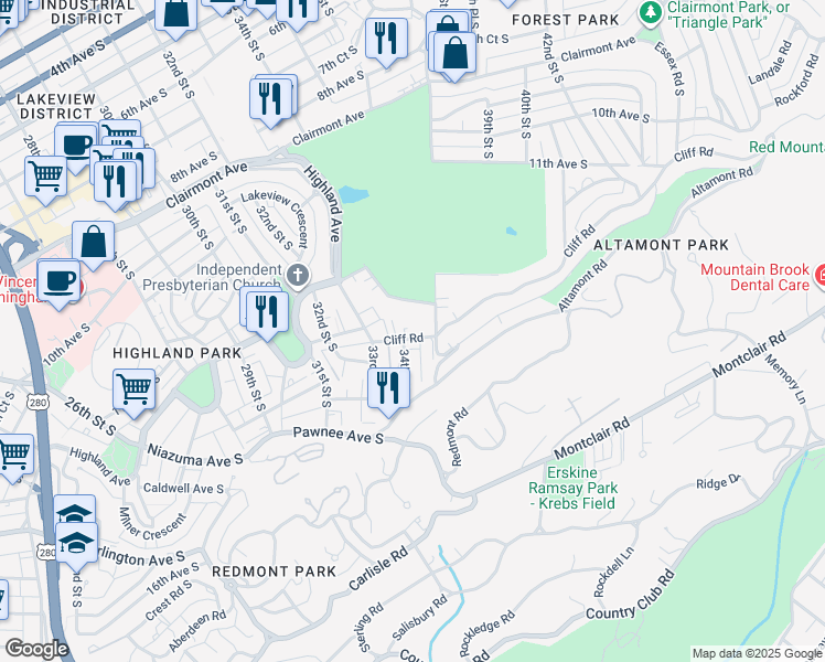3400 Cliff Road is in the Highland Park neighborhood. Highland Park is the 3rd most walkable neighborhood in Birmingham with a neighborhood Walk Score of 65.