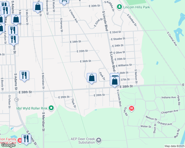 map of restaurants, bars, coffee shops, grocery stores, and more near 3722 South Granton Place Drive in Marion