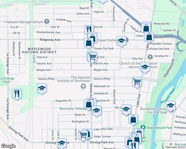 This location is in the Maplewood neighborhood in Rochester. Nearby parks include Maplewood Park, Holleder Memorial Stadium (historical) and Seneca Park.