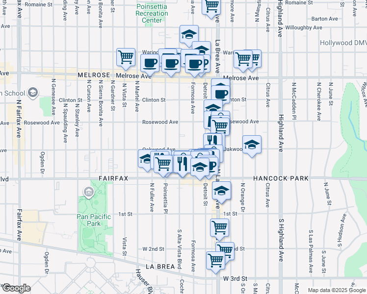 This location is in Los Angeles. Nearby parks include Pan Pacific Park, West Wilshire Recreation Center and West Wilshire Playground.