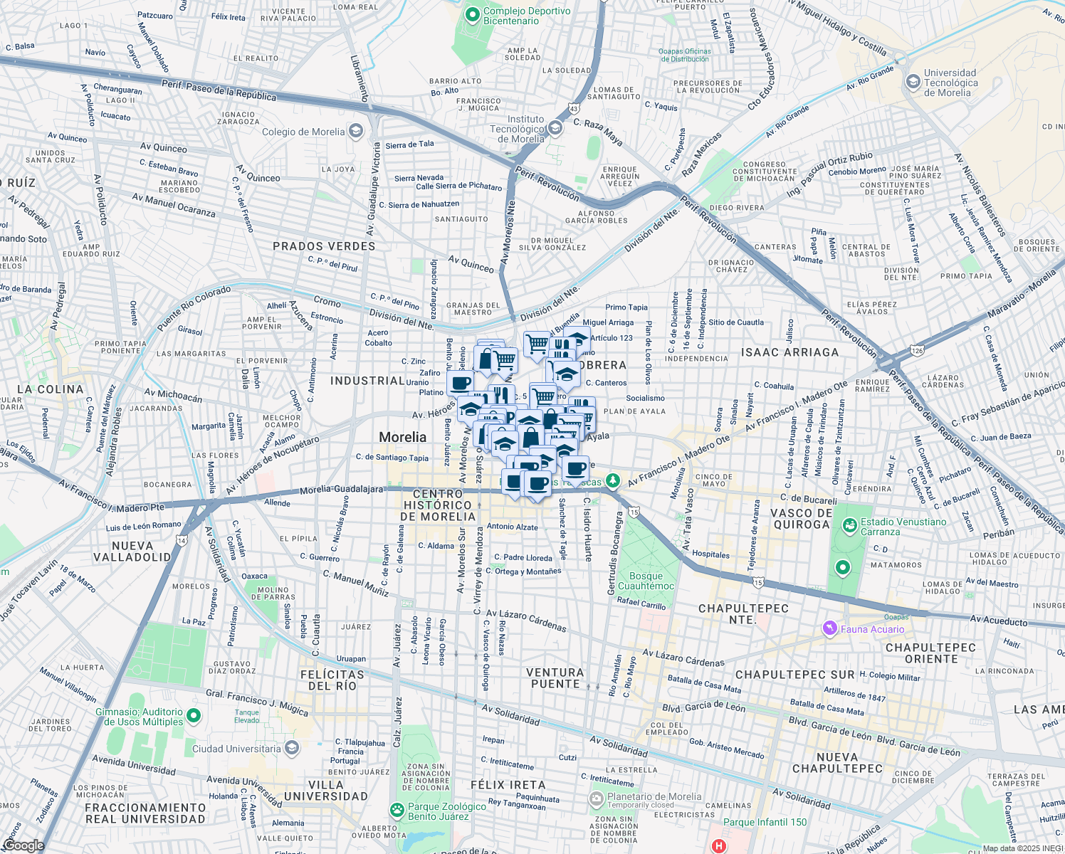 Explore how far you can travel by car, bus, bike and foot from 408 Serapio Rendón.