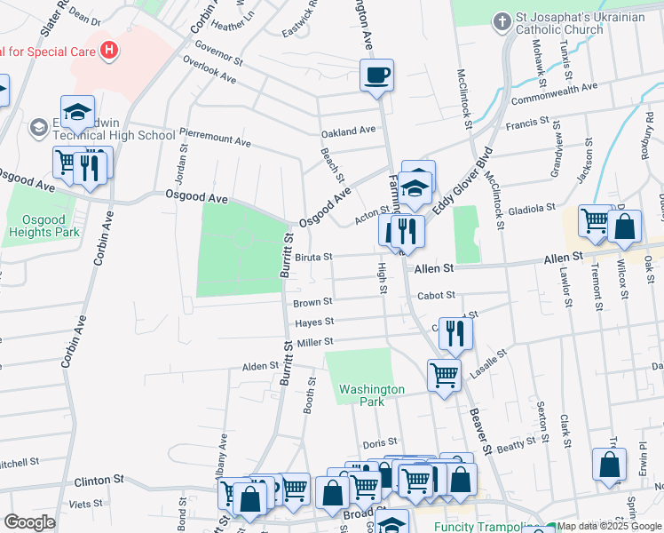 This location is in New Britain. Nearby parks include Washington Park, Osgood Heights Park and City Hall-Monument Historic District.