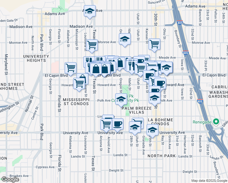 This location is in the North Park neighborhood in San Diego. Nearby parks include North Park Community Park, North Park and Playground.