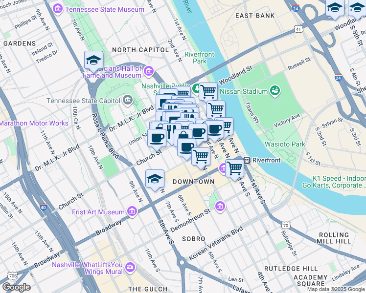 This location is in Nashville. Nearby parks include Church Street Park, Victory Park and Bicentennial Park.