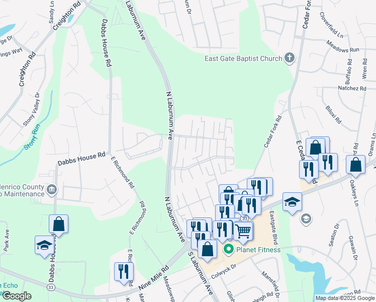 425 North Laburnum Avenue has a Walk Score of 23 out of 100. This location is a Car-Dependent neighborhood so almost all errands require a car.