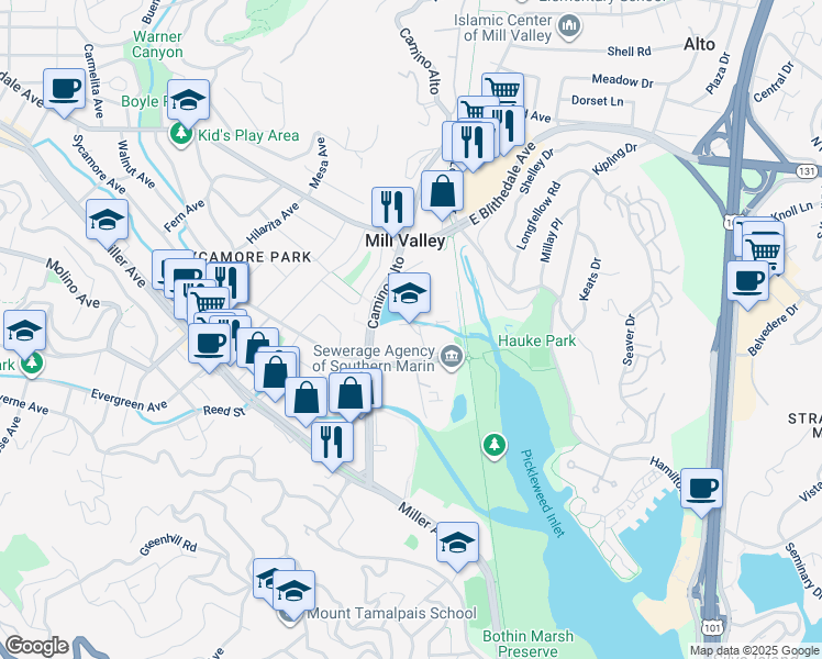 This location is in Mill Valley. Nearby parks include Marina Park-Playgrounds-Golf Course & Walkpath, Bayfront Park Mill Valley Dog Park and Freeman Park.
