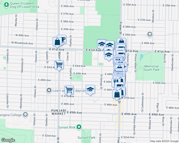 This location is in the Sunset neighborhood in Vancouver. Nearby parks include MacDonald Park, Cartier Park and South Memorial Park.