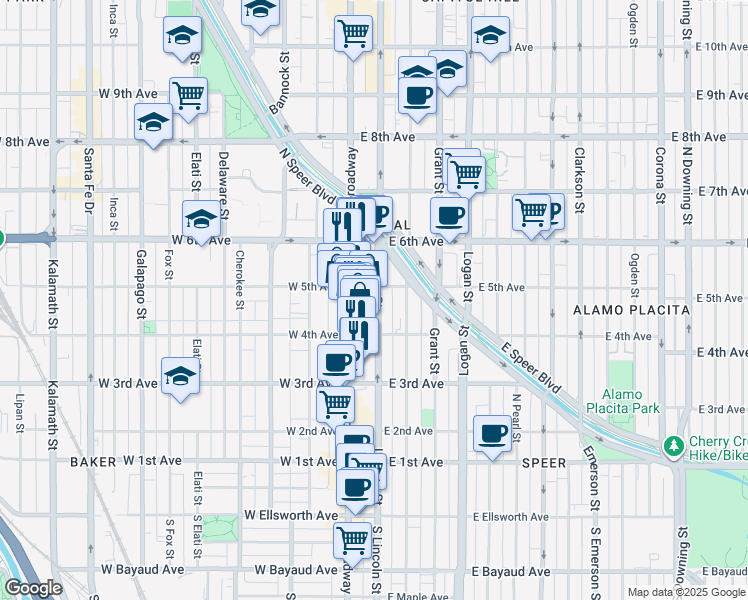 This location is in the Speer neighborhood in Denver. Nearby parks include Governor's Park, Baker Historic District and Alamo Placita Park.